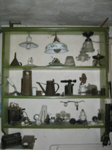 Museum Durch anklicken eines Fotos können Sie eine Diashow starten. MuseumsschrankStern-Dreieck SchalterHandpumpeReibeisenGewindeschneiderIsolatorenLampeMessbecher